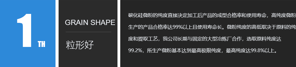 濰坊凱華碳化硅微粉有限公司成立于2002年,國家高新技術企業,公司占地40畝,標準廠房19000平方,辦公樓、研發2000平方,年生產能力3萬噸。一直從事陶瓷級微粉的生產銷售,所生產的微粉具有純度高、粒形好、穩定性強等特點,主要用于反應燒結、無壓燒結、硅碳棒新工藝、汽車尾氣處理(DPF)、納米隔熱保溫、機車制動、防腐涂料、研磨拋光、橡膠樹脂等領域。標準產品有:F240、F1200、W40、W28、W20、W14、W10、W7、W5、W3.5、W2.5、W2、W1.5、W1、W0.5、D3E、5S、100F及整形高密度系列綠碳化硅微粉,廣泛應用于燒結、防腐、研磨拋光、涂腐等廣大領域。
